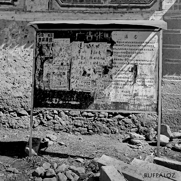 昔、働いていた現像所へは電車通勤だった その頃、どこの駅にも必ず 黒板にチョークで書き込むタイプの「伝言板」があって 『○○さんへ 先に行ってます』とか、 『本日の大会は雨天中止です ○○高校野球部』など 自分には何の関係もない「伝言」を、足を止めて眺めることがあった 来るはずのない恋人に宛てた、切ないメッセージも見た ケータイが普及して「伝言板」は消えた メッセージはポケットに隠して、みんな素知らぬ顔で歩いてる 写真は、中国 大理市にあった掲示板 「自動車が増えてきたので、交通事故に注意し...