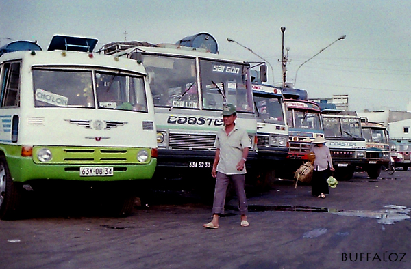 ホーチミン・チョロン地区にあるバスターミナル 長距離をぶっ飛ばして帰って来たバス達 フロントのプレートを行き先に替えたら、また走り出す 自分のチケットのバスを探してると、胸がときめいた JUGEMテーマ:楽しい旅行★Happy Traveler