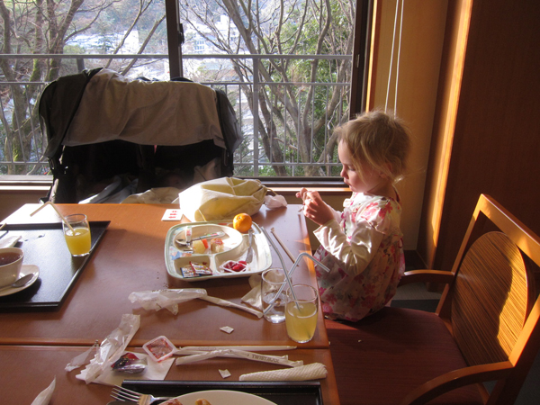 JUGEMテーマ:楽しい旅行★Happy Traveler @有馬温泉 兵衛向陽閣 朝食" class="pict" />朝食が終わったので 朝の温泉へ 抹茶サービス お菓子落とすよ! あ〜ぁ 錦鯉たちに 朝食に あげちゃったね! ! お風呂から帰ってきて 私たちが帰りの準備をしていると Mちゃんはお庭で ワンマンショー 縄とびと マリア様の歌を歌いながら 振り付けもしてくれました。