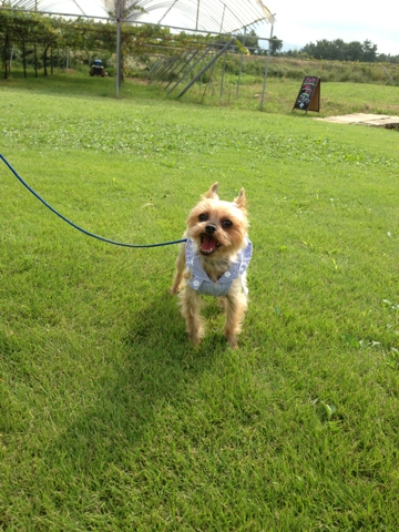 JUGEMテーマ:楽しい旅行★Happy Travelerブドウ園のドッグランにて、久しぶりの てっぺいの笑顔!?20日夜、新幹線で東京から帰郷した娘1と舅と夫と4人で、おでかけ。この日は、曇り空・・、かつてからの念願、山藤ワイナリーに行ってきました。ブドウ狩りは、シュチューベン?といったか黒い葡萄。一人1200円は、自分たちの食べる量と相談して、高いと予測されたので、葡萄棚を眺めるだけ。白ワインを1本所望したほか・・・葡萄パフェを4人で食べてきました^^購入したのは、甲斐路と安芸、マスカット・・・(名前忘れてしまいまし...