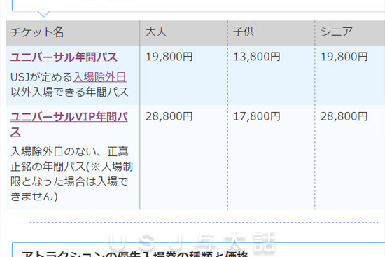 今日からゴールデンウィークに突入ですね。 きっとUSJにもたくさんのゲストが詰めかけるんだと思われますが、期間中、気温差が激しいようなので、体調に気を付けてくださいませ。 コメントを頂いて知ったのですが、年間パスの値段が上がっています。 コメントを読ませてもらってから、先月末にリニューアルを終えたUSJ情報サイトのUSJのチケット価格一覧表で確認してみました↓ ユニバーサル年間パス:大人19,800円 子供13,800円 ユニバーサルVIP年間パス:大人28,800円 子供17,800円 となっていました。 ...