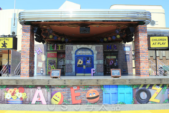 ステージ14横にステージがあります↓ ここでは毎年何かのショーが行われていまして、今年の3月に始まったのが『セサミストリート・ファンキー・パーティ』です。 セサミの仲間が出てくるショーなんですが、今回のショーはダンスなどの動きよりも、ボーカルと楽器の演奏がメインとなっていて、USJ開園以来ずっと頑張ってるキャラクターのエルモがドラムを叩くんです。 ワタシはこのショーを見ていて不思議に思ったことがあったのです。 エルモがドラムを叩いて音が鳴るのが分かるんですよ。 でもね、アーニー...
