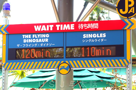 平日にUSJに行くことが多いので、パーク内の混雑は土日祝日よりもましだと思います。 でも、まだ乗れていないのが、ザ・フライング・ダイナソー。 頻繁にUSJに通うようになると、待ち時間が30分と出ているだけで、並ぶ気になれなくなっているため、ワタシには敷居の高いアトラクションになっております(ーー;) この日も、シングルライダーの待ち時間が短ければ乗ってみようと思っていたんです。 が… 110分か… 30分も待てないワタシにとっては、到底待てない時間。 なので、サンフランシスコエリア...