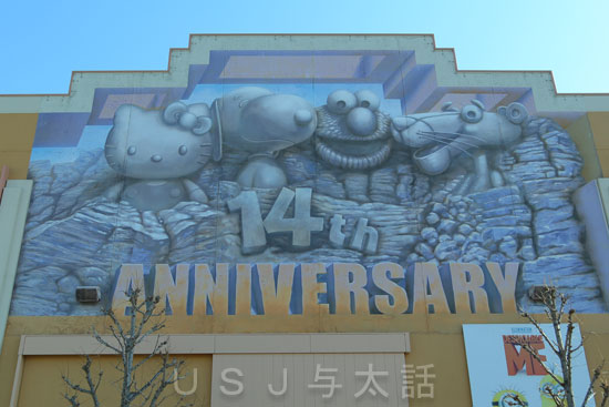 今年の3月31日で15歳になるUSJ。 パーク内には、その年齢を記したものがありました↓ 「ありました」と過去形で書いたのは理由があるのですが、まずはこの看板のことを書いてみます。 この看板はレストラン・メルズドライブインの横にあるステージ14の壁面に設置されています。 14という数字は14周年になったときに変わったもので、その前は13という数字が描かれていました。 これだけを聞くと1歳からずったあったように思う方がいると思いますが、そうではありません。 ワタシの記憶が間違ってないければ...