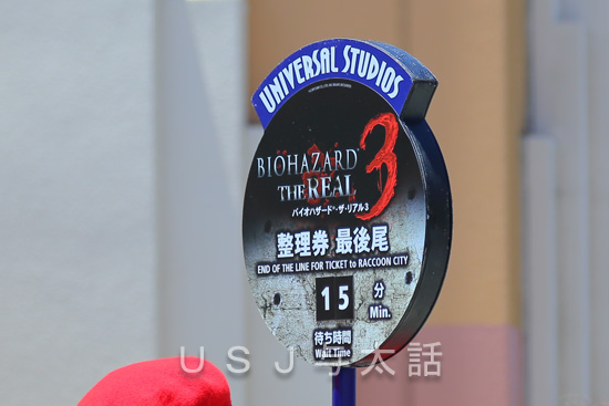 本格的な夏休みにはまだ早いせいか、こんな待ち時間が目に入りました。 これは、バイオハザード3の整理券を発行している所の待ち時間情報です。 表示されている時間は15分 この時間が長いか短いか? 感じ方に個人差があると思うのですが、ワタシにとったら異例に短い待ち時間でした。 異例に短いものの、ワタシはパーク内をアチコチ回る予定があるので、この時は断念。 それから約1時間後の午後1時前でした。 再び整理券の発行場所に行ってみると、待ち列がほとんどない状態(・。・; 指定...