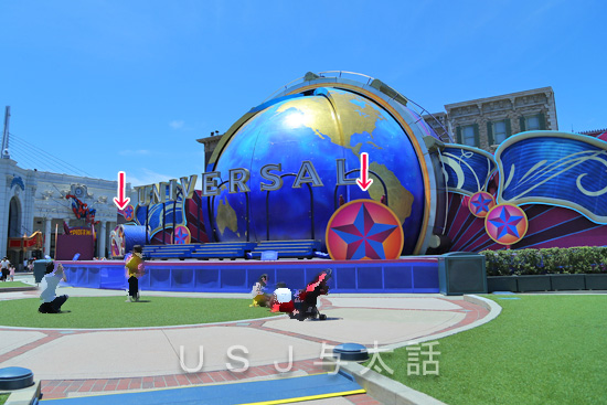 明日から始まる夏のイベントに向けて準備進んでいることを書いていないことに気づきました。。。 ギリギリになってしまいましたが、ともかくこの写真を見てください↓ ここはグラマシーパークにあるグローブステージと言って、10周年の記念イベントの際に作られ舞台です。 ここで行われる夏のイベントがウォーターサプライズパーティー。 このショーで使われるものが舞台上に設置されていたのです。 それが赤い矢印で示した所にあります。 そこをアップにしてみましょう↓ 経験したことのある人な...