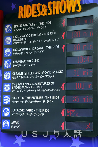 少し前に書いたように、毎年6月の月曜日は学校行事の代休で、平日月曜日なのに子供さんの姿が多くて混雑しています。 今月の月曜日は残すところ、あと2回。 あとの二回は、おそらく今週ほどの混雑はないと思うのですが、参考になると思う待ち時間の情報をお知らせしておきます。 写真を撮ったのは午前10時頃です↓ 待ち時間がちょっと見にくいのですが、一番上の スペース・ファンタジー・ザ・ライドは70分 ハリウッド・ドリーム・ザ・ライド・バックドロップは130分 ハリウッド・ドリーム・ザ・ライドは8...