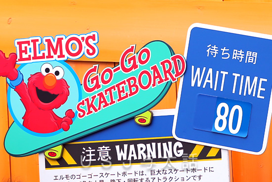 ハリー・ポッターエリアのハリー・ポッター・アンド・ザ・フォービドゥン・ジャーニーが3Dになったということで、話題性はこちらのほうが高くなっておりますが、今年の春にお目見えした、エルモのゴーゴー・スケートボードとモッピーのバルーン・トリップの人気もまだ高くて、待ち時間が長くなっています。 この日は春の運動会の代休だったのでしょう、月曜日なのに子供さんの姿が多いため、ユニバーサルワンダーランドにはたくさんの子供さんが遊びに来ていました。 そのことで、待ち時間が以下の写真のようになっていまし...