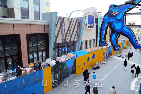 USJが開業して今年は14年になります。 ワタシは開業当初から、今のように通っていた訳じゃないので、最初の頃がどうだったのか分かりません。 ただ、ワタシが知っている限りユニバーサルシティ駅からUSJに至る道は、左側に無粋な壁が連なっていました。 その記憶にある壁が、4月25日のブログで紹介した下の写真の状況です↓ このように工事の仮囲いのような壁が、ずっっっと並んでおりましたが、今週、この壁が撤去されていたのです! ただ、何も無くなったわけじゃなく、簡易なものに変わっていたのでそれを写真...