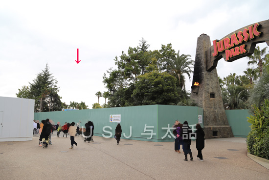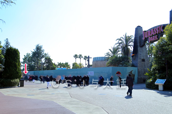 ジュラシック・パーク・ザ・ライドを体験するには整理券が必要になるという発表がメンテナンス中に突然行われ、現在は整理券が必要な状況のはずです。 「はず」と書いたのは、まだその状況を確認できていないからでありまくす(;^_^A アセアセ・・・ ちゃんとしたレポートは後日になりますが、『ここが整理券の発行所?』と思われるところがあり、写真を撮っていたのにブログに書くのを忘れておりました。 コメントで整理券のことが書かれていたことで思いだし、急きょアップすることにしました^^ 場所はジュラシック...