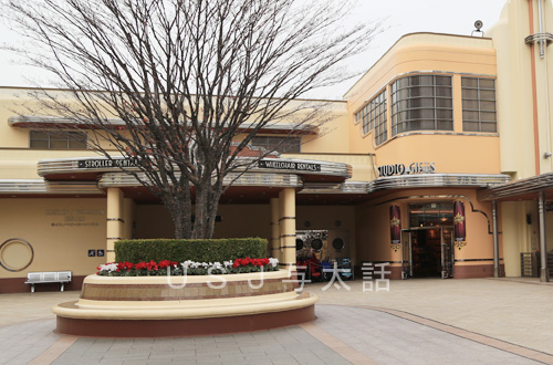 パークに入ってすぐ右側に、こんな建物があります(木の向こう側です)↓ ここはベビーカー・車いす・電動カートをレンタルしている所。 ベビーカーや車いすはご自宅から乗ってくる方も多いでしょうが、電動カートは難しいですよね。 ここにはそれらがあるのです↓ 道中かさばって困るので、ベビーカーとか車いすを、パーク内だけで使いたいと考えている方には便利ですよね。 ちなみにレンタル料はこんな感じです↓ 公共交通機関を利用してUSJに行かれる際、できるだけ身軽で行って、USJで借りるのも...