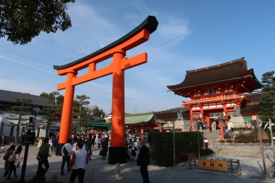 SNSで世界的に有名になっちゃった 千本鳥居 ここ、伏見稲荷大社は おいなりさん きつねさんなのです。 青空に月が浮かぶ 桜が咲いた すてきな日に この有名な 観光地に来ることがでけました 外国の方もたくさんい...