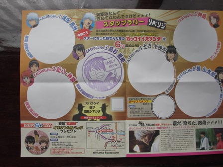 JUGEMテーマ:京都 先日太秦映画村に行った時、姉の孫が「銀魂スタンプラリー」のラリーシートを探してもらってきました。 近頃の小学生は、そんな情報も良く知っているのですね、感心します。 なになに・・京都市内6カ所でスタンプを集めたら、新選組・・ではなく「真選組」の特製缶バッチがもらえるんですって。 これが映画村でゲットしたスタンプ。 全部で6カ所のうち、さっそく1カ所押せました。 あ...