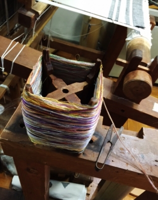JUGEMテーマ:京都 ←よろしければクリックお願いします。 田中です。 織屋では、ハンパの糸がどうしても出てきます。 少しづつ残った糸は残しておいても仕方ないので、 とりあえず枠に繰られます。 色んな色が混じってしまった糸で紐を結います。 まず、釘などに端を引っかけて二重にします。 それを、縄を結う原理で、手の平でこすり一方向に撚りをかけます。 手前の方を釘に掛け、半分にして、今度は逆に撚りをかけます。 撚りを慣らしたら紐...
