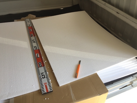 前回、コタツの下に敷く断熱マットを天井に貼り付けてみましたが、翌日には見事に落下してました(汗) 断熱マットは片面が銀シートで裏はスポンジなんですが、スポンジ部分を両面テープで貼ったので粘着力が足りなかったようです。 まあ、結露には効果があったので、今回は銀シート側を張ることにしましたが、天井に貼るにはこの商品は向いてません。 そこで残る部分を何で貼るかですが、キャン友のshunsukeさんからのアドバイスでスタイロフォームを考えましたが、天井全体を貼るとなるとけっこうなお値段になりそう。 &...