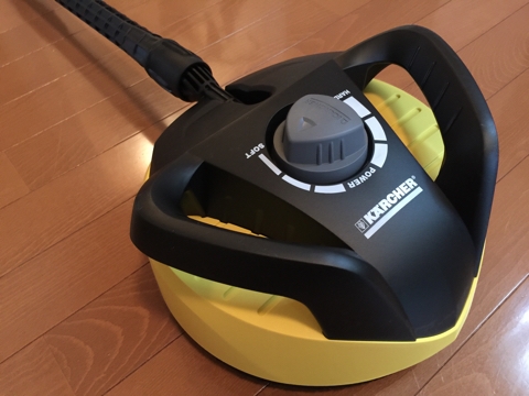 雨上がりの土曜日。 いよいよケルヒャー K5 サイレントカー&ホームキットを使う日がやってきました。 まずはテラスを洗うことにしました。 使用するのはテラスクリーナーというノズルヘッド。 吹き出しノズルがふたつ。 角度が付いているので回転するようです。 このヘッドはツマミで吹き出し強さを調節できます。 念のため最小でやってみましたが、力が弱すぎて話になりません。 最強にしてみると、まあまあな感じ。 それでも、何度も何度も前後しないと全面がキレイにはな...