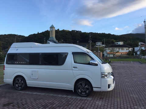 10月26日(土) 「米良の庄」駐車場で迎えた朝は曇り。 お隣のハイエースさんとちょっとお話させて貰ったら、なんと行先が同じでした。 奥様が来られなくなったらしく、お一人での参加のようです。 せっかくなので、一緒に会場まで向かうことにしました。(こちらは土地勘もあるので先頭で・・) 受付開始は9時からだったので、大急ぎで食事と準備を済ませ会場へGO!です。 会場の駐車場に到着すると、まだ8時半前だというのに沢山のキャンカーで一杯になってました。 こりゃ先着して良い場所...
