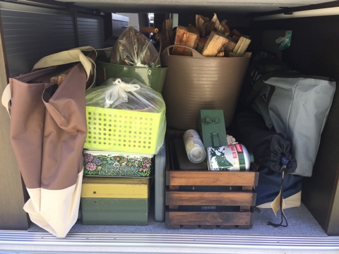 8月8日(木) 少し早めのお盆休みをいただき、憧れの長期キャンプに行くことにしました。 朝早くから荷物を積み込みいざ出発! しかし、荷物が増えましたわ。余裕だった収納スペースもこんな状態です。 これ以上、モノを増やすのは控えないと・・・。 さて、目的地の南小国町にあるゴンドーシャロレーオートキャンプ場に午後1時頃に到着。 眺めの良いBサイトをGETできました。 今回、初下ろしのスクエアタープを張りましたが、慣れない車体連結にかなり苦労してしまい...