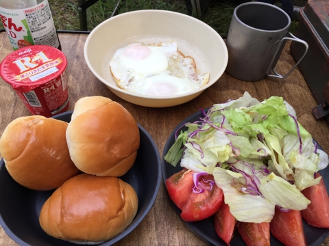 ゴンドーシャロレーオートキャンプ場で迎えた朝。 ゆうべ少し飲み過ぎたせいで、陽が高くなってから起き出しました(汗) びっくりしたのが、タープの結露がひどかったこと! 置いていた椅子の座面に水が溜まってたくらい。 たった一枚の布なのに、ここまで結露するとは想像外でした(;'∀') 夜はあれほど涼しかったのに、陽が昇るとあっという間に気温が上がります。 暑さに閉口しながら朝食の準備。 しっかり美味しくいただきました。 朝ご飯...