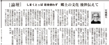 JUGEMテーマ:慣わし・風習 JUGEMテーマ:沖縄 団塊世代の我々が小学校の頃まで、かの悪名高き「方言札」は使われていた。 ウチナーグチは方言であり、東京を中心にした標準語より劣ったものであると。だから使ってはならないと先生がたが率先して「標準語」使え運動を展開していた。 お蔭さまで(?)、私は見事に順応してしまい現在に至っている。まったく我ながら忸怩たる思いである。 (-_-;)  ...
