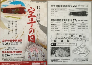 JUGEMテーマ:空手道 JUGEMテーマ:沖縄 27日の「空手の日記念演武祭」での一斉演武は、「普及型?」と「普及型?」で、僅か数分で終わってしまう。 ・・・のだが、海外含め県内外から空手家が集う壮大なお祭りだ。(一斉演武終了後は、五つの演武エリアに分かれての演武がある。) 一斉演武は、昨年までは型をしっかり出来る子に絞っていたが、今回からは多少型に自信のない子も、思い出つくりや後学の為に参加させることに...