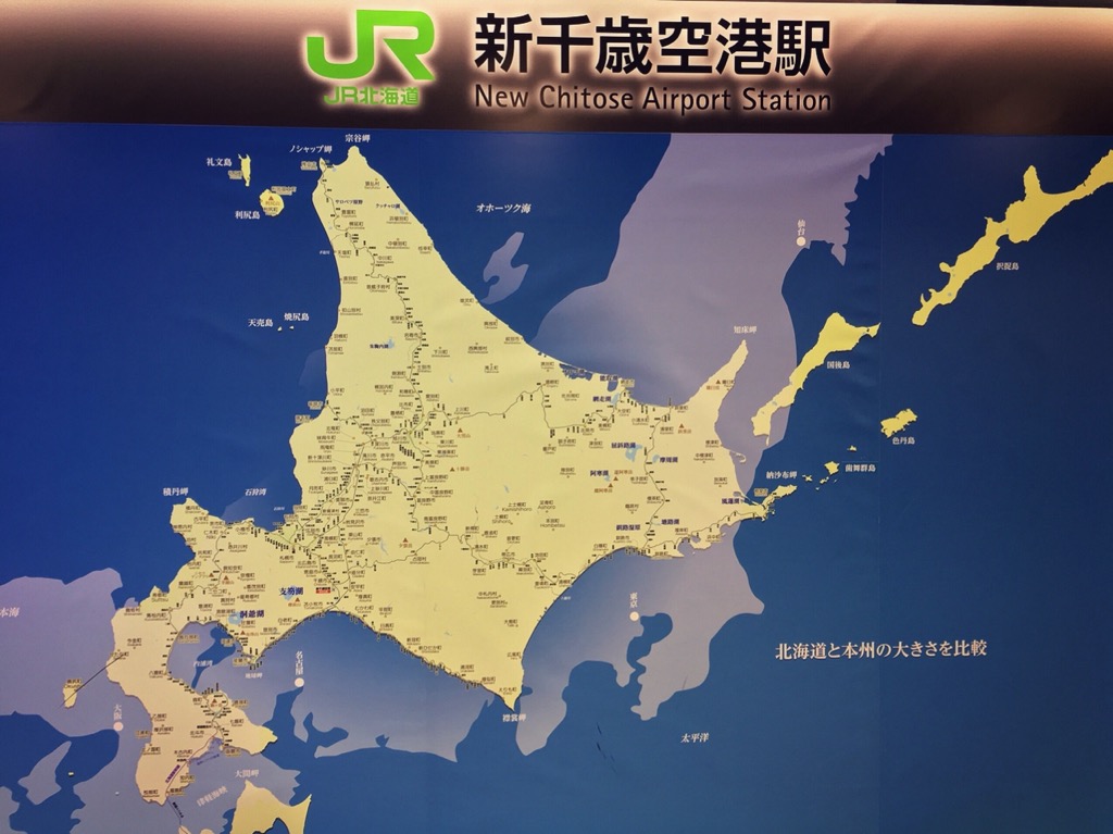 昨年の香港旅行に続き、大学時代の友人3人旅、 今年は、北海道です。 1人が札幌に住んでいるので、友人宅に1泊お世話になり、 もう1泊は、登別温泉へ行ってきました。 北海道に足を踏み入れるのはかれこれ18年?ぶりくらい、 本当に久しぶりの北海道です。 ところで、北海道はでかいと分かってはいたけど、 ほんまに大きんだ!と実感させられたのが 新千歳空港駅にあったこの看板。 大阪〜東京間を軽く超えてしまうバカでかさ! そして、例えば、札幌と...
