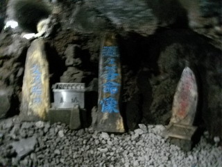 船津胎内樹型の母の胎内の続きです。 船津胎内樹型の母の胎内の先に父の胎内もあります。 胎内って子宮を意味するのに、父の胎内っておかしいですが、 胎内は体の中を意味するのだと思います。 父の胎内の奥には、瓊瓊杵尊(ににぎのみこと)が祀られています。 ニニギは天孫降臨の神で、母の胎内のコノハナノサクヤビメと結婚した神です。 船津胎内樹型にはニニギとコノハナノサクヤビメが夫婦で祀られています。 母の胎内から出る時に、カメラを手で持っているのがつらくて、 そしてポケットがない...