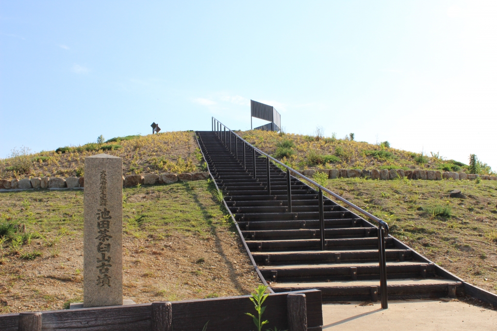 JUGEMテーマ:パワースポット 世界遺産登録が確実視されている大阪の百舌鳥・古市古墳群。大阪に古墳ブームが吹き荒れるかも知れませんね。 規模は百舌鳥・古市古墳群には遠く及びませんが、北摂地域(大阪北部)にもいくつか古墳が存在します。そんな「北摂の古墳」を特集していきたいと思います。 第1弾は、大阪府池田市の茶臼山古墳です。見晴らしの良さでは北摂随一でしょう。 写真は古墳に上る階段です。わりと立派な前方後円墳です。4...