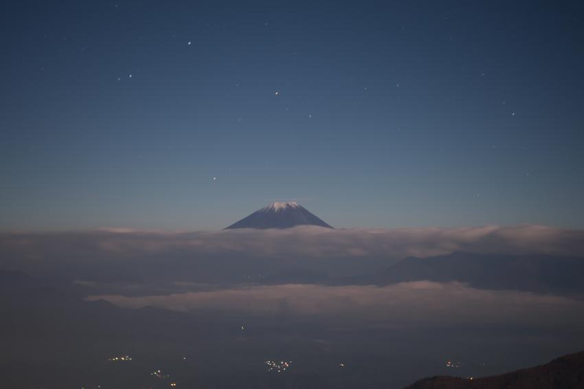 JUGEMテーマ:富士山 今晩は。 少し遅く成りましたが、11月8日の写真です。 この日も何時もの場所ですが、夜中から山道を歩き何時もの開けた場所へ。 向かう途中、雨が降っていて富士山は見えるか心配だったけど満月に照らされシルエットで見えます。 先ずは、お湯を沸かしコーヒーの準備、三脚を立てコーヒーを飲みながら富士山の貫けを確認の一枚。 おっと!! (笑) 先程迄、雨が降ってた為フィルターのソフトを付けた感じ。 (笑) 全然見えないよりマシですか。 ゆっくり一枚一枚撮りながら露出を見ます...