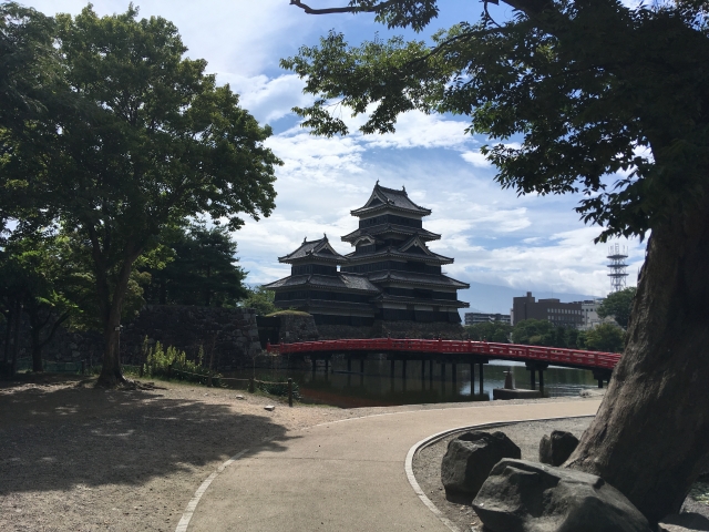 松本城・浅間温泉・美ヶ原温泉のプランを見てみる 松本城へ徒歩で JR篠ノ井線・大糸線、アルピコ交通上高地線 松本駅(東口(お城口))から約20分。 JR大糸線 北松本駅(東口(お城口))から約7分。 松本城へバスで 松本駅バス停から、松本電鉄バスタウンスニーカー北コースで約10分、「松本城黒門」バス停下車。 松本バスターミナルから、松本電鉄バス浅間温泉行きなどで約10分、「大名町」バス停下車。 松本城へ自動車で 松本インターチェンジから車で15分。 ※天守に登る階段がとても急な角度です...
