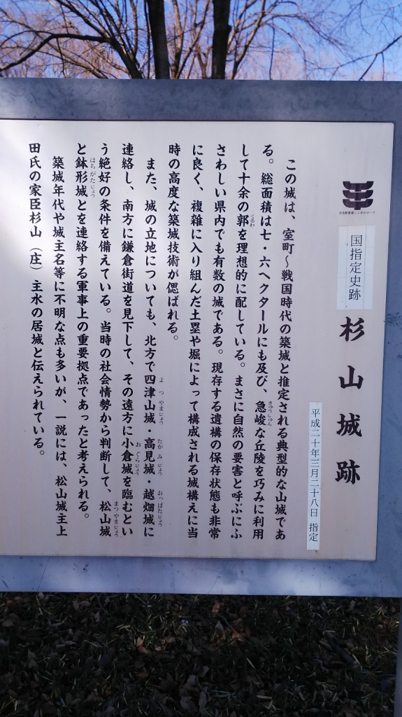 お次は、「杉山城址」。 小学校のすぐ裏手に在り、小学校の一角が臨時駐車場に なっていました。 とても広い敷地で、歩き方に迷います。 お天気も良く、気持ちが良かったです。 JUGEMテーマ:お城
