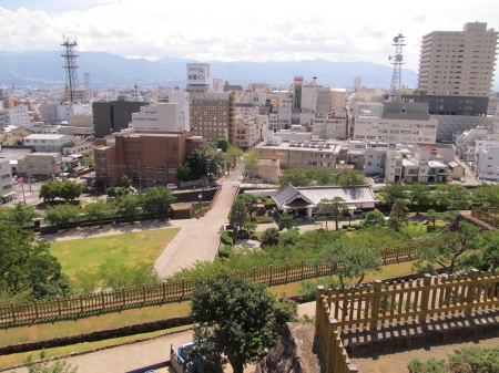 JUGEMテーマ:お城 お城の高台から、あっち!のほうを眺めますと。 はい? 何か、珍しいもんでもあるのかしらね??? と。 オネエサマが小首なんか傾げられることでありましょう。 えぇ。 遠くに山が見えるのでございますよぉ、来館者様。 あ? 冗談でありますと、イッパツ、ヘコヘコしておきまして。 南口?の、ご門なんぞが目の下に見えます。 あっこまで降りて行くには。 天守台を下りて、ちっと!戻って、ぐるりと回って、ニャンコの目。 むふ。 いえいえ。 画面の左下のほうから石段を下り、大広場から門へ...