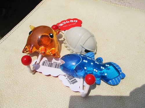 先日の旅のおみやげ。 沼津港深海水族館のオリジナル・マグネット。 といっても、輪ゴムかけなんですが。 ま、いいか。 かわいいメンダコ! シーラカンス! ダイオウグソクムシ! コレクションに新たなアイテムを追加できました♪ 土肥金山で買ってきたキーホルダー。 2014年2月に買ってきたものがだいぶメッキが落ちてきてしまったので 全く同じものを買ってきました。 右側が2014年に買って...
