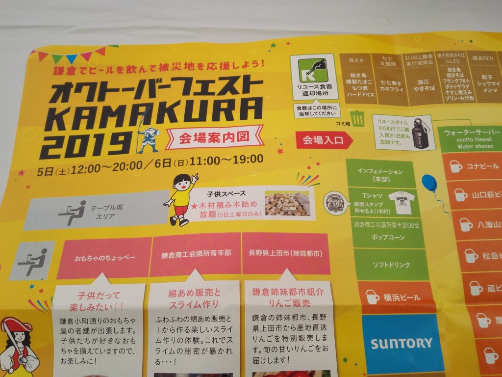 JUGEMテーマ:鎌倉 ビールイベントに誘われて鎌倉に遊びに行ってきました。 オクトーバーフェストKAMAKURA2019です。 「夜の鎌倉の活性化」と「継続的な復興支援」をコンセプト 鎌倉の地で行うビールの祭りです。 各地の地ビール、鎌倉市内の飲食店の出店、子供向けブースなどもあり、親子でも楽しめます。 イベントの収益は被災地支援のために寄付されます。 ということで、お値段も良心的。 ビールの飲み比べもできるからいろんな種類が飲めて美味しい!! 鎌倉...