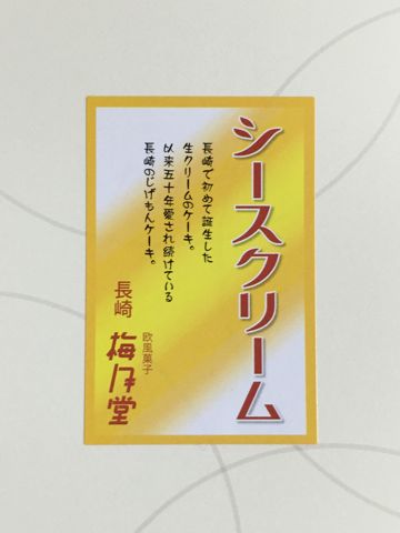 長崎は梅月堂オリジナルのケーキ「シースクリーム」。 長崎でしか食べられない、長崎市民が愛して止まないご当地ケーキ。 ちなみに正式名称は「シースクリーム」だが、長崎市民は「シースケーキ」と呼び親しまれているそうです。 期間限定で東京で販売されているのを見つけて、購入。 うまかね〜。