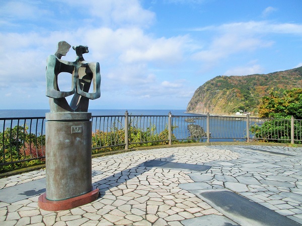 旅人岬(静岡県伊豆市小土肥309-1)に来ました。 土肥から小土肥までの県道17号線の中ほどにあるフィッシングポイント横根の岬には、 2,400?の敷地に、展望台と駐車場が整備され、普通車23台、大型バス2台の駐車ができます。 岬からは180度以上のパノラマが拡がり海越しの夕日を臨む絶好のポイントとなっているところ から、恋人岬にあやかって町の新しい名所にしようと『旅人岬』と名づけられました。 (伊豆市HPより抜粋) 重岡建治氏作による「家族」と銘されたブロンズ像 ...
