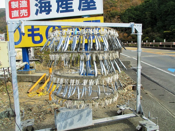 お食事処 海産亭 ニサク印の海産屋の店先で、干物がクルクルと回ってますよ! 西伊豆クリスタルビューホテルの前にあるお店です。 回ってるのは… さよりかな? かますかな? もしかして…さんま? お店のオンラインショップを見てると…さんま丸干しってあるので、さんまだろうな…。 「ひものの駅」って書いてあるね… あと… ニサク印って何? HP調べたりしたけど… 特に説明がないんだけど… 名物オーナー...