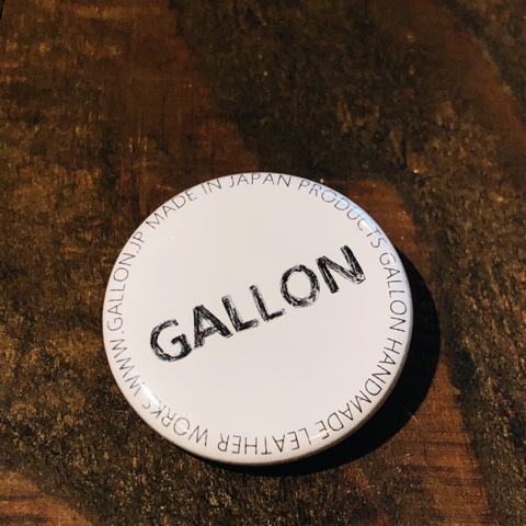 現在プレゼント中の「GALLON WEB SHOP 9周年記念ノベルティグッズ」の缶バッジ。手書きガロンタイプ。直径3.2cmほどで、ガロンの真鍮コンチョより一回り大きいサイズ感です。
