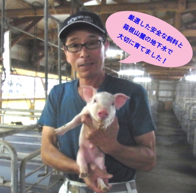 JUGEMテーマ:駅弁 三島ブランド・箱根山麓豚! 「箱根山麓豚(はこねさんろくとん)」は、約20年前から育てている三島ブランドの銘柄豚です。 この「箱根山麓豚」を作りあげるまで、鎌野さんは何年もかけて品種をかけあわせ、 飼料の配合など試行錯誤を繰り返し、ようやく作り上げたのだとか。 特別配合の専用飼料は、トウモロコシや大豆粕などの厳選した飼料に 微量の海草粉末や木酢液をブレンド。 特有の臭みを抑えた肉は、口の中で溶ける脂が甘く、 繊維が細かいのでやわらかい肉質が特徴です。 箱根山麓豚を...