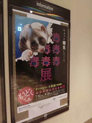 夏休み、ぷちが早々に熱を出して。どうにかおさまったので 参加させていただいている『ねりま子育てネットワーク』の夏季キャンプ?に行ってきました〜 というわけでまだ夏休みに水族館等お出かけしていないはむぷちコンビです。 そろそろ動き出したい…気はいっぱいなんだけど、 暑い…何しろ暑い!!! さて、夏のオススメイベントその1! サンシャイン水族館で行われている夏期特別展 「毒毒毒毒毒毒毒毒毒展(もうどく展)」〜毒を持つ生き物〜 (正面から撮ったら自分が写ってしまって…斜めか...