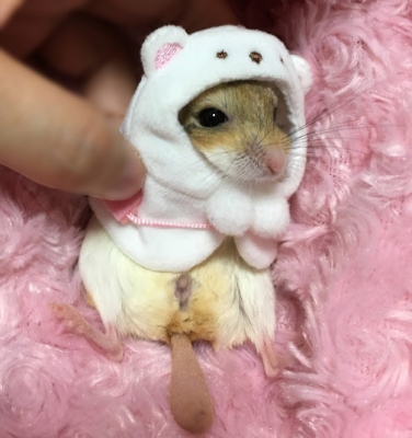 すみっこぐらしの縫いぐるみに着せるフードがオブトアレチネズミに丁度良さそうなので買ってみました。 *着せてる人がいたのを見て オブトにあうということはハムスターもいけるんじゃないかな・・・わからないけど。 早速着せてみたんですが 惨敗写真から見てもらいましょう。 フィリップ君 私はフィリップ君に嫌われてるので、 尋常じゃない感じに暴れてしまい ただのエビフライ写真が撮れました。 しゅんそく君 サイズ的にどうかな...
