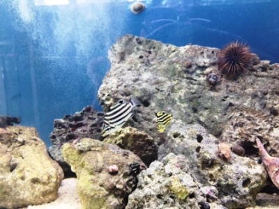 はいたい!小塩です 沖縄はいよいよ梅雨の時期に入りました ほぼ毎日雨がザーザー降っていますが、夏に水不足にならない為に 今のうちにたくさん降っておいてほしいですね そんなある日、もとぶ元気村にある「小さな水族館」にかわいいお魚が仲間入りしました とてもすばしっこくて、小さいお魚なんですが、どこにいるか分かりますか? 写真をズームアップしてみると・・・ 写真中央に注目 このお魚は「コトヒキ」という種類で、まだ2?くらいの子どもです 大きくなると30?く...
