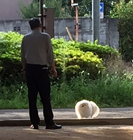 先週末は、町内会の盆踊り大会でした。 役員をしているので、早目に会場入り。 一通りの作業が終わってマッタリしていたら、ワンちゃんのお散歩をしていた方を発見 リードをしていないワンちゃんが後ろからトコトコやってきて、ご主人様の前でチョコリン。 ご主人様のお顔をずっと眺め、見つめ合っている姿がなんとも微笑ましくて、思わず パシャリしちゃいました JUGEMテーマ:かわいい動物たち