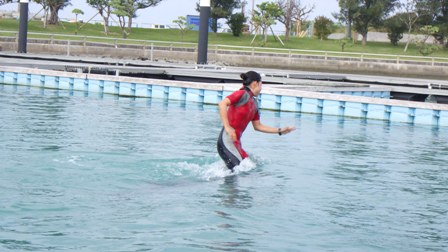 JUGEMテーマ:かわいい動物たち こんにちは。きこです 今日はマーニの新種目「サーフィン」を紹介します!! イルカのサーフィン?どんな種目? 言葉だけだと、あまり想像がつかないですね! サーフィンは、トレーナーが立った状態でイルカの背中の上に乗り、泳ぐ種目です この種目はイルカとトレーナーのタイミングが、とっても大切な種目。 何故タイミングが大切なのかというと、速いスピードで泳いでいるイルカの体に乗るので トレーナーはバランスをとる必要が有ります。 そして上に乗っているトレーナー...