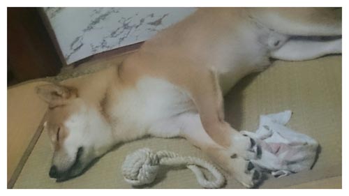 JUGEMテーマ:かわいい動物たち 気に入ったおもちゃは飽きるまで(破壊するまで)手放さない。 柴犬・大吉さんです。 このように寝ていても 手元に置いている… これがちょっとこっちが近づこうものなら ( ゚д゚)ハッ! と目を開く(;´Д`) いや、そのタオル返して…。 しかし、ほどなく ぐぅ。 寝ちゃったー(*´Д`)! でもタオル取り返そうとすると…一枚目の写真...