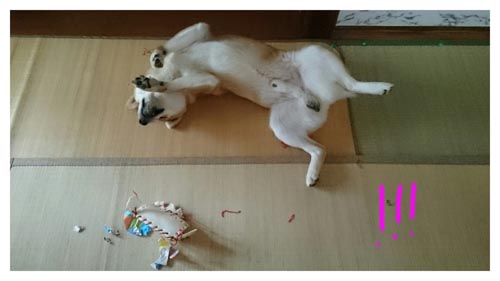 JUGEMテーマ:かわいい動物たち どんなに片付けても 片っ端から 散らかされる… おま(; ・`д・´) それ…立体的に作られた犬用ガムですやろ? さっき渡したばっかりやろ? …もう…壊したんか… 紐…好きやんなぁ… おい…! 折り紙混ざってるやん(;´Д`) どっから持ってきて… また掃除やり直しだ…_| ̄|○