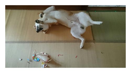 JUGEMテーマ:かわいい動物たち 噛みにくいかなーと思いつつ、あげると… 破壊。 とにかく 破壊。 ひも状のガムで縫ってる立体型ガム。 これは思った以上に楽しいらしくて すっげー夢中になってた('ω') 口にくわえてるのが ひも状のガム。 ごろごろ転がりつつ、破壊を繰り返す大吉… 遊び疲れて 「おい、もう寝るのか?」 寝ちゃった('ω') 見つけたらまた買って...