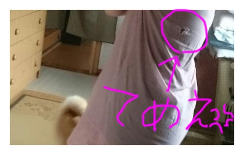 JUGEMテーマ:かわいい動物たち …やぶりやがった… 後ろから突進してきて爪が刺さって「びりり」と不快な音がしたと思ったら こんな感じでやぶれてて しかもこの服 今日初めておろした新品も新品 なのに一発で 廃棄処分にいたることになろうとは 思いもしなかったぜ おい、聞いているのか、我が家の柴犬よ(;^ω^)