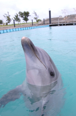 JUGEMテーマ:かわいい動物たち 今日の看板娘はユウナちゃんです! お客さんからも覚えやすいのか人気者です★ チャームポイントはお腹側がピンク色をしている事です♪ そんなユウナちゃんの最近覚えた技が「シャーク」 どんな技かというと、 イルカたちは尾びれを上下に振って泳ぎますが、 魚の仲間であるサメは尻尾を左右に振って泳ぎます 一瞬で終わっちゃうのでお見逃しなく(笑)