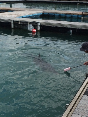 JUGEMテーマ:かわいい動物たち こにゃにゃちはー\(・△・)/ 今日は新入りさんのトレーニングの様子を紹介します!! ついに姿を初お披露目!! ジャーンッ 黒い影が新入りさんです☆ こんな風に初めは先輩イルカのようには顔が上がりません・・・ そのうち徐々に顔を見せてくれるようになっていきます あれから目標だった「トレーナーの手からご飯を食べる」が出来るようになりました 次は「トレーナーの前でご飯を食べてもじっと待つ」ことを教えていきます C.M